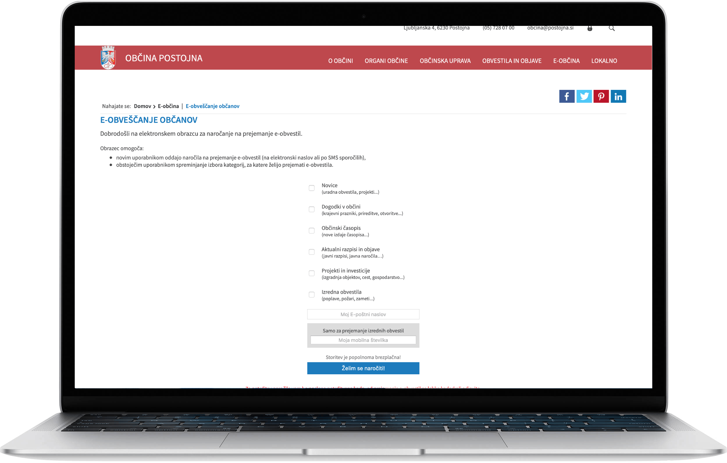 SMS IN E-MAIL OBVESTILA OBČINE, NA KATERA SE NAROČIJO OBČANI |