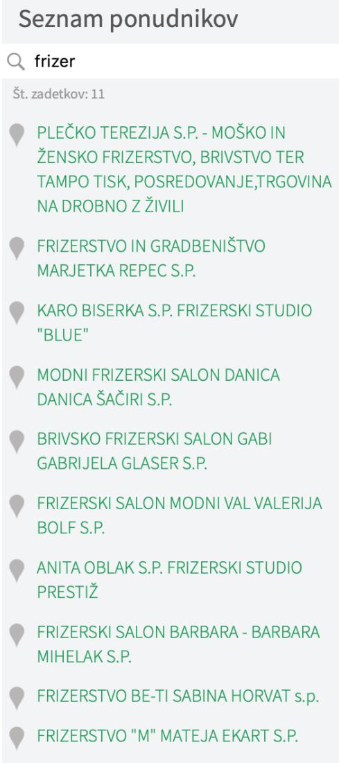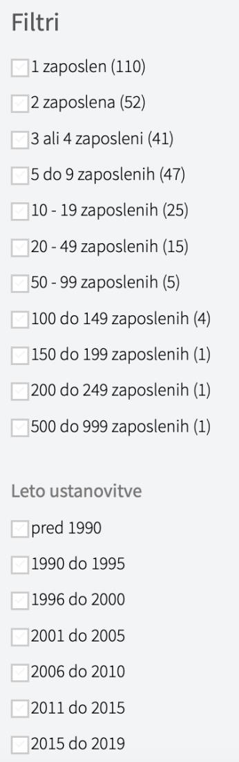 ISKANJE LOKALNIH PONUDNIKOV PO DEJAVNOSTI, ŠT. ZAPOSLENIH, LETU USTANOVITVE |